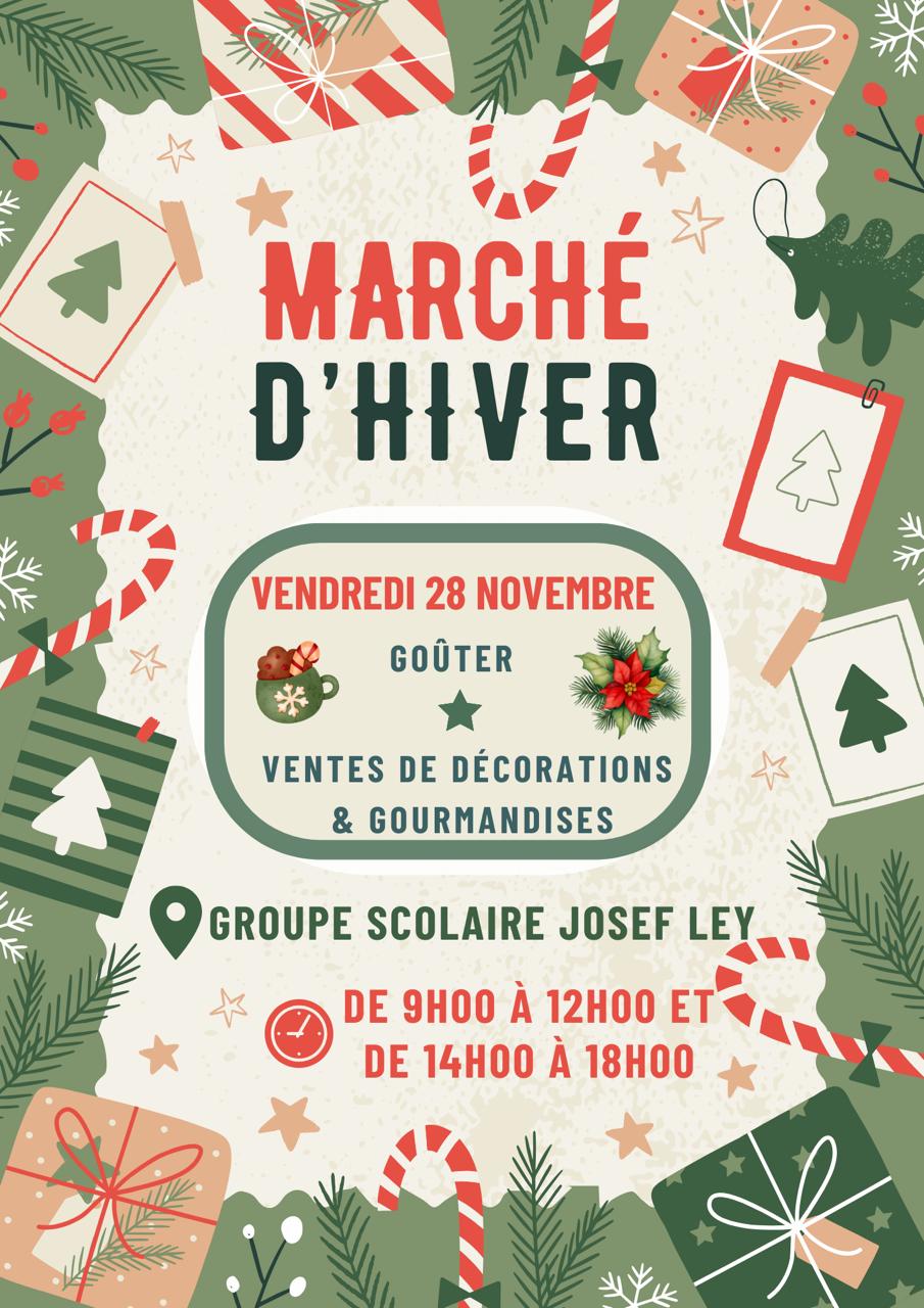 LE GROUPE SCOLAIRE JOSEF LEY organise son MARCHÉ D’HIVER, le VENDREDI 28 NOVEMBRE 2025 de 9h à 12h et de 14h à 18h au GROUPE SCOLAIRE JOSEF LEY