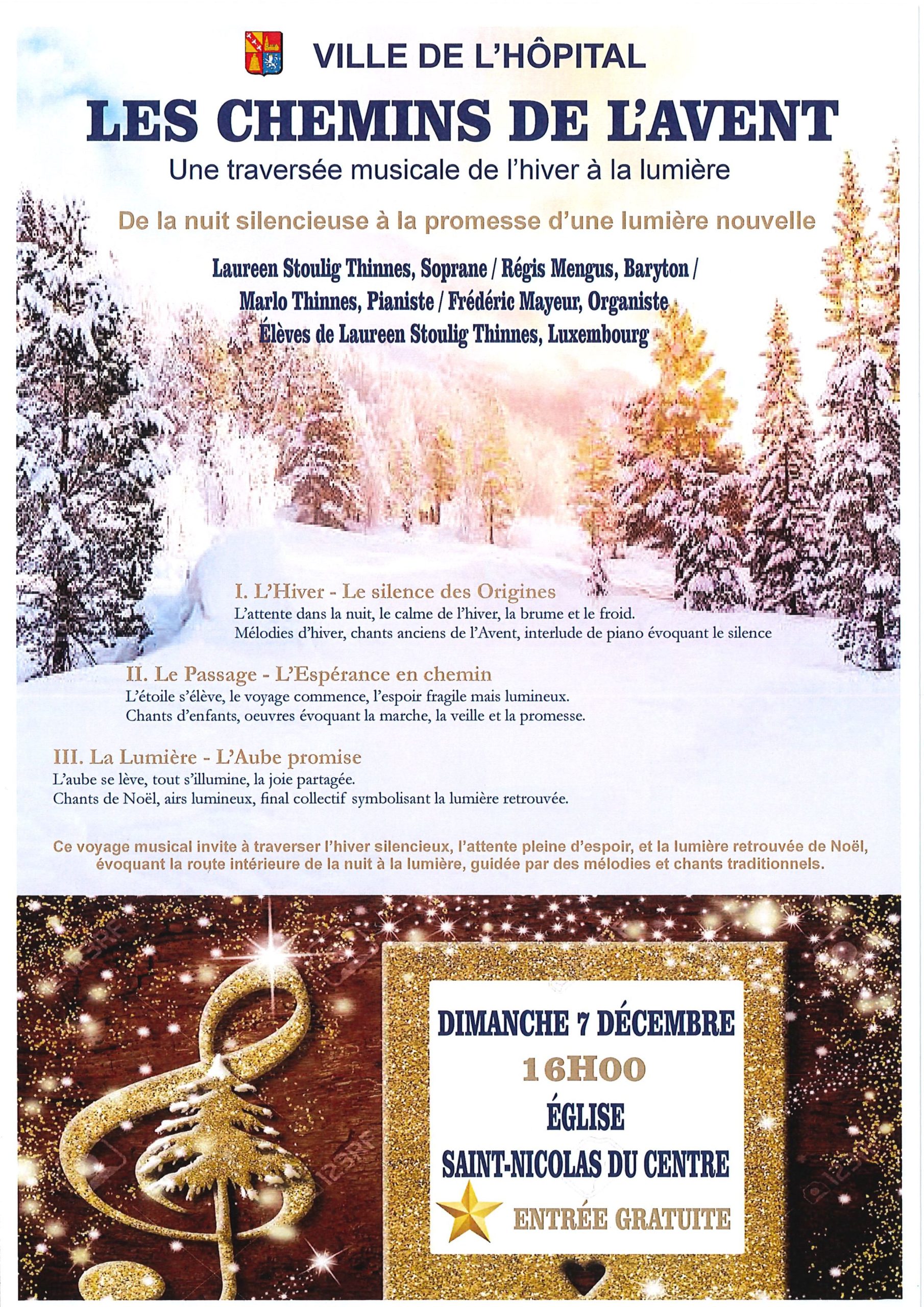 La Municipalité et l’association Cultur’& Vous vous invitent à assister au concert LES CHEMINS DE L’AVENT