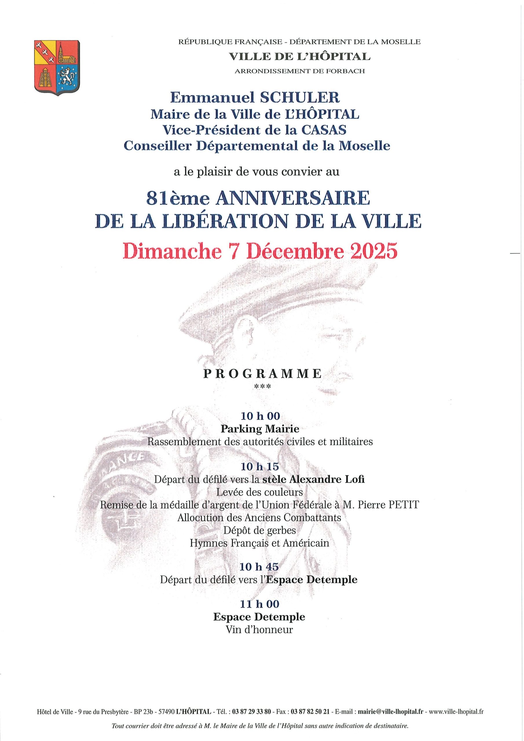 La municipalité vous invite aux festivités du 81ème ANNIVERSAIRE DE LA LIBÉRATION DE LA VILLE