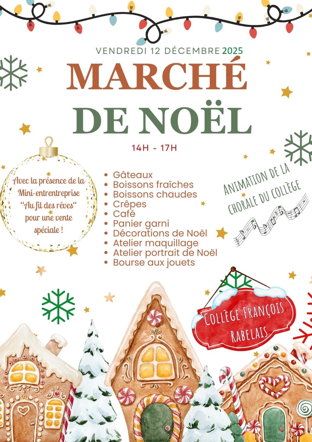 Animation de la chorale du collège, ventes de gâteaux et boissons fraîches ou chaudes, crêpes, vente de décorations de Noël, panier garni, etc….