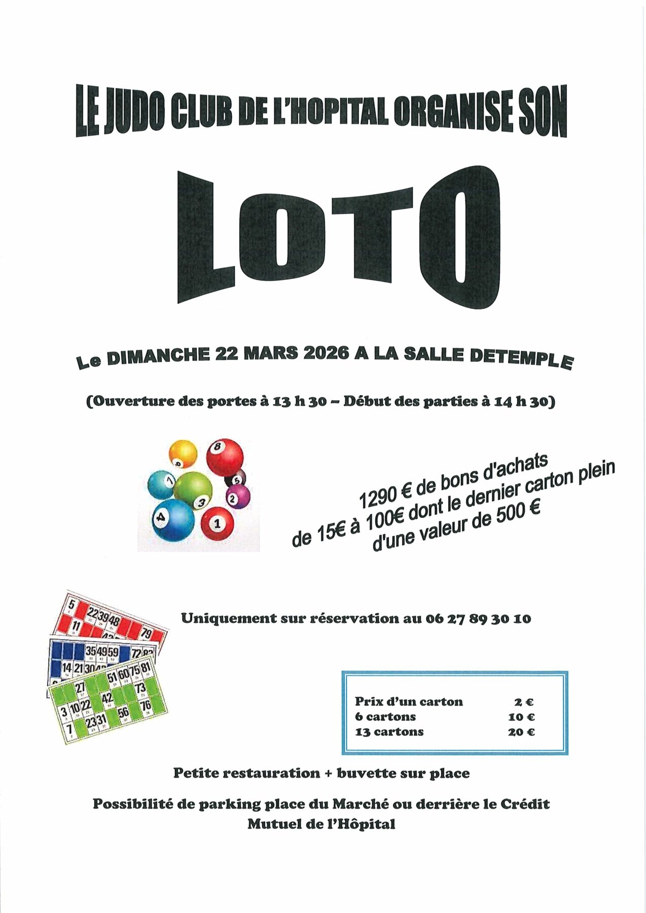 Le Judo Club de L’Hôpital organise son Loto, Dimanche 22 Mars 2026 à l’Espace Detemple.